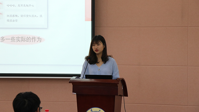 紧接着,来自马克思主义学院的王钰洁同学向同学们讲述了她的故事。从天生缺陷的低估起步,到如今破茧成蝶的蜕变,王钰洁凭借着自己踏实的勤奋努力,多次获奖学金,同时也荣获全国大学生马克思主义理论学习夏令营优秀营员、御姐av
