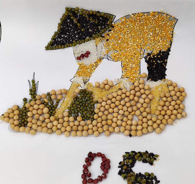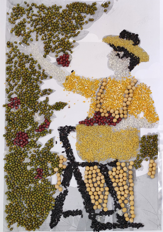 同学耐心讲解。通过对传统农耕文化的追寻,进一步深化同学们的爱农情怀。除此之外,活动现场一幅幅同学们亲手制作的充满生机的种艺画让人眼前一亮的,纸张上简单的黑色线条配上飘香的五谷填充,让农作物弥漫艺术气息,让同学们与农作物更近一步,与农业更进一步。