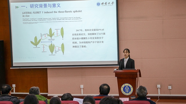 经过各位专家现场打分和前期书面评审分数,决赛最终评出优秀奖四名(奖金200元),三等奖三名(奖金400元),二等奖两名(奖金600元),一等奖一名(1000元),最佳展演奖一名(200元)。2018级区域二班杨芸菲、2018级农学五班兰雪渝、2018级农学五班郭青青、2018级区域一班李欣玥荣获优秀奖;2019级农学四班熊子娴作品《水稻雄性不育突变体ms10的表型分析和精细定位》、2018级农学五班胡舒婷作品《超量表达StNAC072促进马铃薯块茎形成》、2017级区域一班李林蔚作品《重庆市北碚区农田生态系统服务功能评价》荣获三等奖;2017级神农班晁好瑜作品《BrassicaEDB:A gene expression database for Brassica crops》、2018级农学五班孙佳婕作品《水稻籽粒灌浆调控基因GFD2的图位克隆》荣获二等奖;2018级农学五班段倩楠作品《LF1调控水稻侧生器官极性发育的分子机制研究》荣获一等奖并荣获最佳展演奖;。