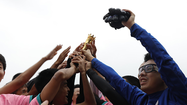 学生男子足球队勇夺桂冠,实现历史性突,替补队员和观众涌入球场一同庆祝。随后,队员们带着笑容、汗水和泪水参与颁奖仪式,沉甸甸的奖牌悬挂在每位队员的胸前,这是每位队员一个多月以来辛苦付出,奋力拼搏的见证,也是对他们最好的回报。最后众人围成一圈,在队长的带领下一同举起了属于集体的第一座奖杯。本届足协杯比赛中,学院足球队在常规时间内总计共进15球,丢3球,且一直保持比分领先或持平,从未落后,夺得冠军实至名归。
