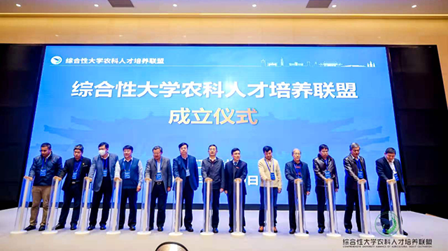 “综合性大学农科人才培养联盟”是由浙江大学农业与生物技术学院等国内综合性大学涉农院校联合发起的全国性高校合作组织,联盟将在人才培养、教学合作、资源共享、教育支持计划和会议论坛等内容上开展密切合作,旨在探索新农科发展路径,创新新时代办学模式,培养更高质量、更高要求、更高素质的农科拔尖创新人才。当天,仪式通过了联盟章程,第一届理事会、理事长和副理事长名单,浙江大学当选联盟理事长单位,我校与北京大学、上海交通大学、中国科学院大学、中山大学等10所高校的涉农学院共同当选副理事长单位。