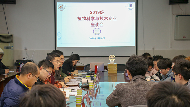 1月10日,学院2019级植物科学与技术专业座谈会在37教召开,学院党委副书记郑莉佳、副院长张建奎、中外合作办学办公室主任刘志斋、学生工作办公室主任兼团委书记、2019级辅导员许莹竹、教学工作办公室主任卢会翔、班主任代表杜海和2019级植物科学与技术专业各班学生代表50余人参加会议。会议由2019级辅导员许莹竹老师主持。