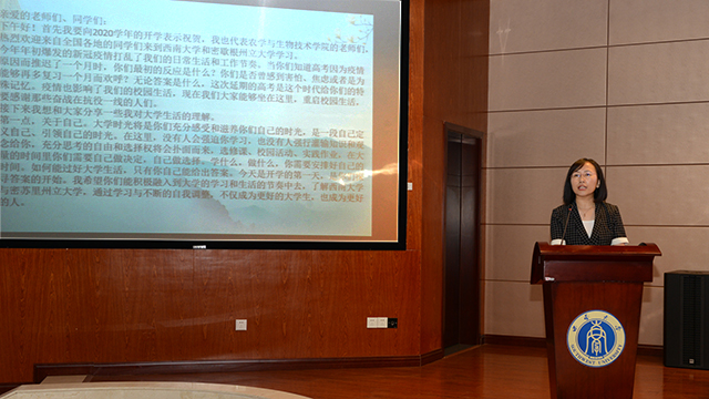 教师代表倪郁教授向同学们强调了计划的重要性,指出自主学习是大学必修课,希望各位2020级植科学生在大学生活中学会自律并拥有不畏艰难、担当重担的勇气与责任。