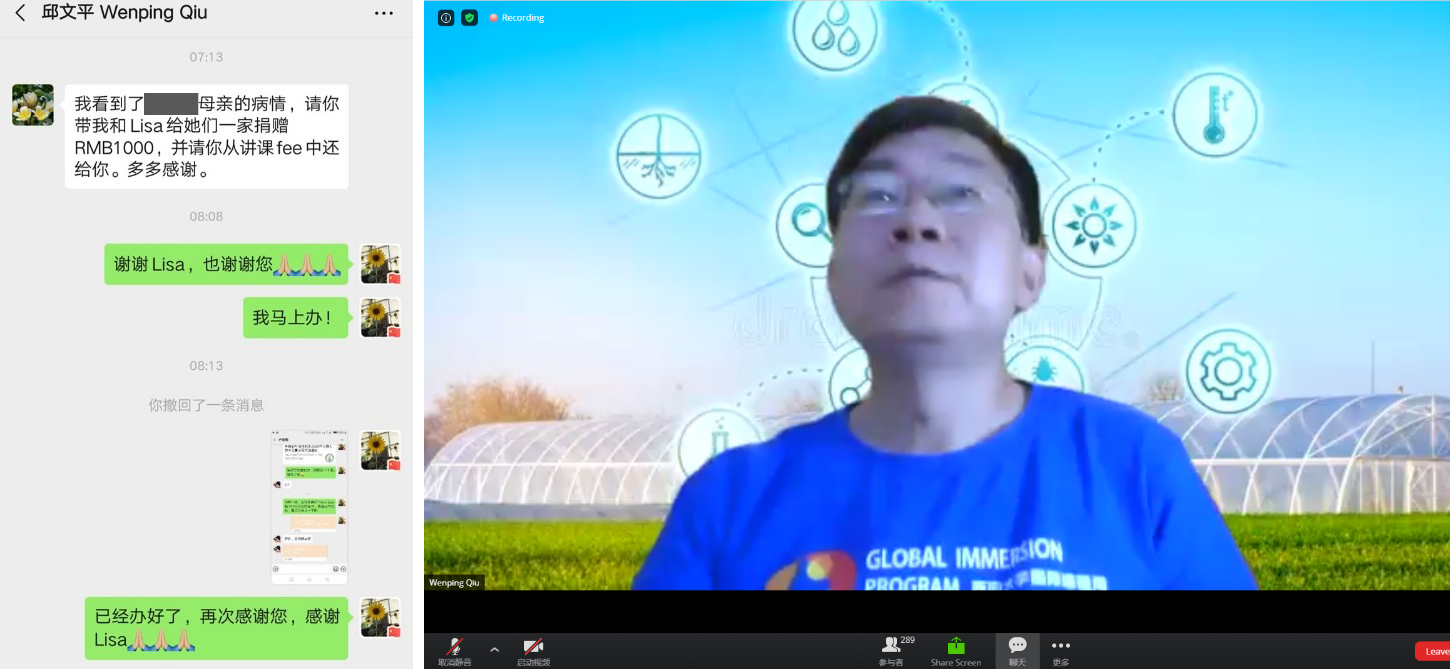 邱老师不仅具有卓越的学术水平,更是对学生体现出深切的人文关怀。行课期间,学院一名选课学生的母亲病情加重。为了稳定学生情绪,积极帮助学生度过难关,减轻学生及家庭的经济压力,学院全体师生自发行动起来,竭尽全力为该同学募捐。邱老师得知这一情况后,立刻委托学院共课老师,向该同学捐助了1000元。邱老师的这一善举,不仅让学生倍感温暖,也让学院所有老师为之感动!