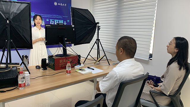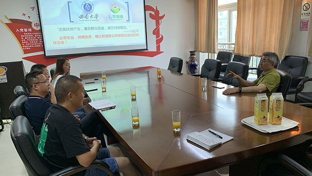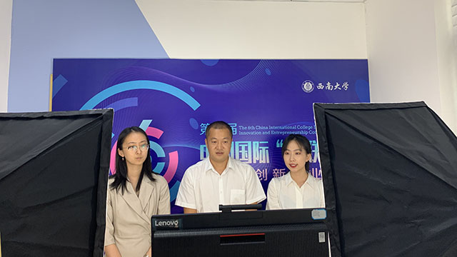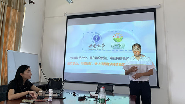 在前期校级比赛的基础上,项目团队不畏高温酷暑,整个暑期都在进行紧张的市赛准备,根据校赛中评委老师和项目辅导老师的意见,发现项目存在的不足并在相关教师团队的指导下及时进行调整,进一步完善和打磨作品。7月29日,指导徐新福老师、学院团委许莹竹老师就《成渝两地油菜多功能利用》所遇到的困难做出指导性意见,引导团队确定切实可行性的解决方案,及时解决所存在问题。8月3日上午,创新创业学院张斌院长、黄楠老师,学院院长吕典秋教授、团委书记许莹竹老师带陈志友博士的“云萃农业”项目专门前往柑橘研究所请该领域专家周常勇教授指导,对项目提出了许多非常好的意见和建议,各位老师也跟陈志友博士进行了详细沟通和指导,为项目的进一步修改完善建言献策。8月18日,学院专门组织两个项目赛前演练,通过模拟路演答辩,切实提升学生能力水平。学院领导郑莉佳副书记、张建奎副院长对于项目工作机制、答辩思路、语言表达、仪表仪态等都给予了具体专业建议,并对参赛团队做赛前的鼓励动员,这极大地鼓舞了参赛团队成员的信心和斗志。