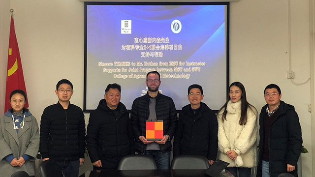 12月31日上午,学院在棉研楼412会议室举行2019级植科专业(中外合作办学)第一学期英语教学工作交流与总结座谈会。美国密苏里州立大学派遣到学院承担2019级植科专业3+1中美合作办学项目英语教学的JONES Nathaniel Brock(内森)老师,学院党委书记赵子华、副院长张建奎、外事秘书刘志斋、教学秘书卢会翔、本学期英语课程助理李唐思禹以及学院中外合作办学办公室的张颖溢、李婉怡等参加了会议,由副院长张建奎主持。