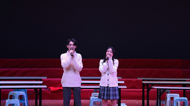 同学的表演和演唱感染了在场的每一个人,赢得现场观众的广泛称赞,大家情不自禁地跟着音乐晃动着闪烁的荧光棒,形成了一道靓丽的风景线。看似简单的歌舞类节目活跃了全场气氛,为晚会全场掀起了第一个小高潮。