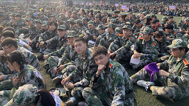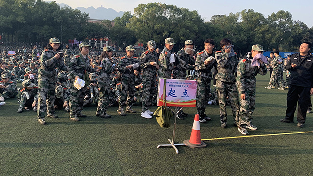 第三运动场上,聚集了全校30多个学院的2019级本科生及辅导员老师们。2019级同学们全体着军训服,一个个摩拳擦掌,“大比武”现场的气氛也随之燃了起来!