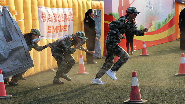 选手队列有序,动作标准,完美地完成了此项比赛。
