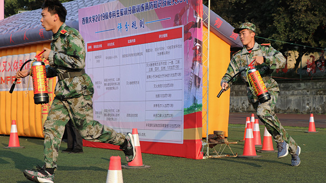 2019级本科生军训分散训练—消防知识技能大比武活动。御姐av