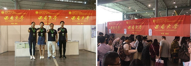 6月24日-25日,重庆市第十五届普通高校招生志愿填报咨询会在南坪国际会展中心举办,学校招生就业处招生管理科科长朱高峰、学院外事秘书刘志斋、数学与统计学院辅导员张熠、荣昌校区动物科学学院辅导员贺玲一行4人作为我校招生代表参加咨询会。