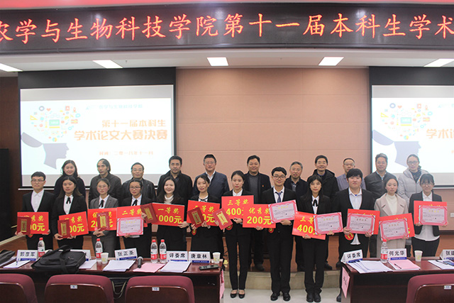 学生学术科技创新氛围,提高本科生学术创新积极性,学院于2018年11月30日下午14:30在隆平楼二楼报告厅举行第十一届本科生学术论文大赛决赛。学院院长何光华教授、学院副院长唐章林教授、副院长张建奎副教授领衔11位专家教授担任决赛评审,学院党委赵子华书记、方凤玲副书记应邀出席比赛现场并为选手们加油鼓励。担任评委的还有各班学生代表,他们作为大众评审评选出在作品展览和现场展演环节的最佳展演奖。大赛由团委书记许莹竹主持,各参赛作品指导老师、各年级辅导员及2016、2017、2018级本科生共同观摩比赛。