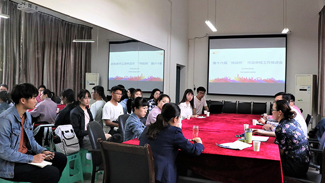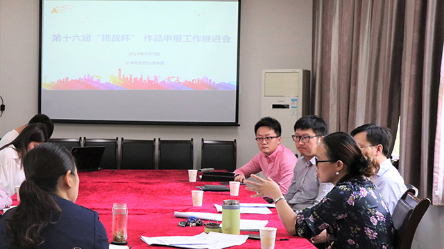 于4月9日上午10:40在棉研楼502会议室举行了第十六届“挑战杯”作品申报工作推进会。校团委副书记于涛、校团委老师邱蔚、学院党委副书记方凤玲、学院团委书记许莹竹、作品指导老师卢坤、冯萍参加会议,与各作品团队成员一起,为“大学生的脑力奥林匹克”共同致力。