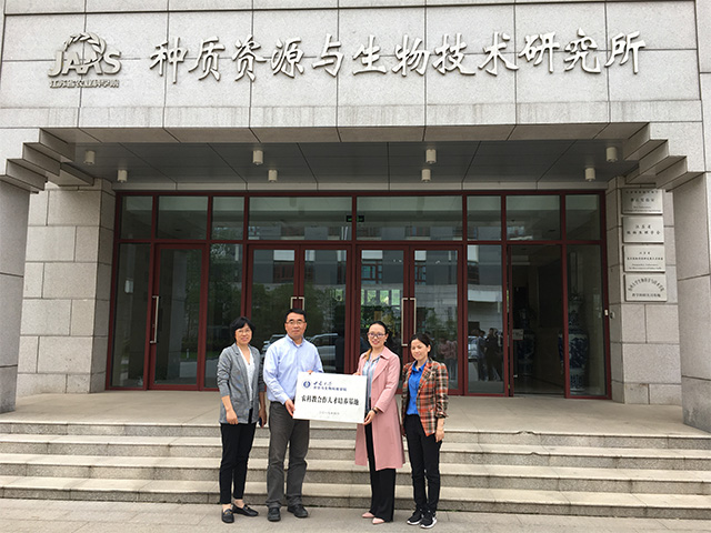 座谈会上,赵所长对来访的方书记和卢老师表示欢迎,在介绍农科院基本情况之后,对农科院目前的人才培养工作进行说明,指出农科院实习生人才缺乏的现状。针对赵所长提出的问题,方书记在介绍学院基本情况之后对共建农科教人才培养基地提出设想,她指出,双方的合作点在于江苏农科院提供学生实习平台与机会,学院提供优秀、对口的学生资源。双方签订农科教人才培养基地共建协议之后,挂牌仪式顺利举行,江苏省农科院种质资源与生物技术研究所正式成为御姐av