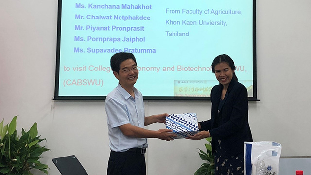 2018年6月19日上午,在院办412会议室,学院举办仪式热烈欢迎泰国孔敬大学农学院(AGKKU)到访的Tidarat Monkham博士及5名交换生。参加欢迎会的有副院长张建奎,外事秘书刘志斋,指导老师代表赵芳明、刘勋等,以及今年暑期即将赴AGKKU交换学习的御姐av