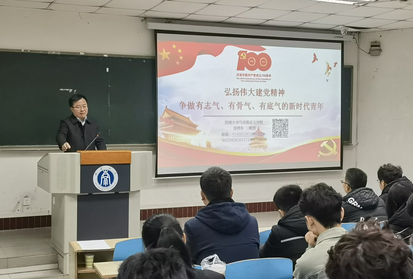 开班仪式在庄严的国际歌中圆满结束。开班仪式结束后,学校马克思主义学院副院长吴艳东教授以《弘扬伟大建党精神 争做有志气有骨气有底气的新时代青年》为题,为全体学员讲授了生动的第一课。
