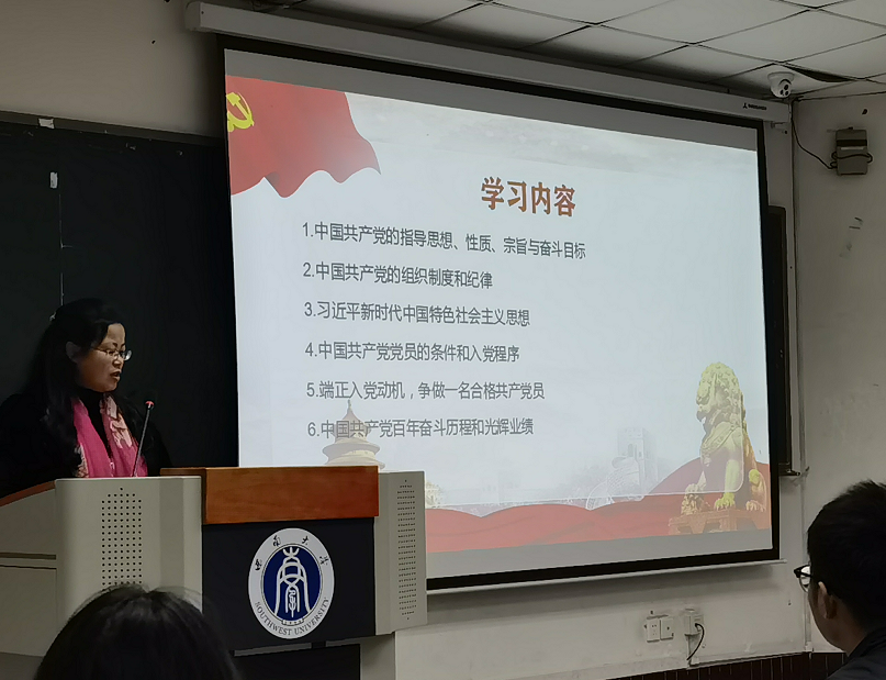 党委分党校2021年第二期入党积极分子培训班在32教213教室举行开班典礼,学院本硕博共160名入党积极分子参加本次党校学习。学院党委书记阳义健、党委副书记郑莉佳、辅导员王皓和高荣蓉出席开班典礼,仪式由学院党委组织员薛中华主持。