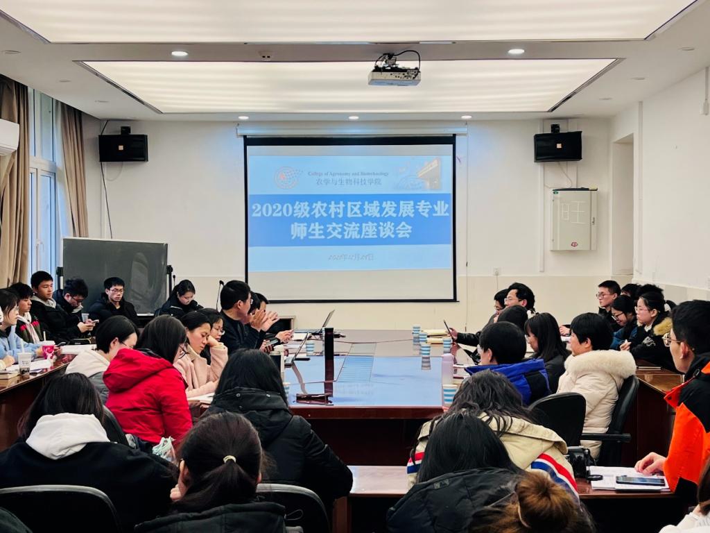 为加强专业认知,帮助同学们认识专业优势,提升专业自信,培养农科情怀,12月29日下午,学院2020级农村区域发展专业师生交流座谈会在37-207召开。学院副院长张建奎、党委副书记郑莉佳、教学办公室主任卢会翔、区域系主任吕长文、区域系副主任袁晓辉、区域系各任课教师代表、2020级区域专业班主任、辅导员和2020级区域专业全体学生参加本次会议。会议由学院2020级辅导员王皓主持。