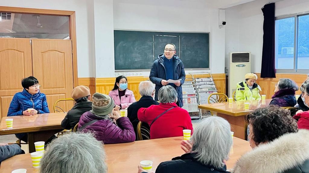 南社区教职工活动中心召开2022年离退休教师新春座谈会。党委书记阳义健,党委副书记郑莉佳,工会主席戴秀梅出席会议。参加座谈会的有离退休老教师代表、青年教师代表及部分学生志愿者。戴秀梅主持座谈会。