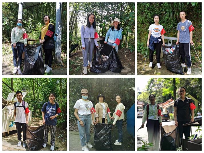活动中,将志愿者分为六个环境守护小组,每2至3人为一组,接力守护,把环保和健身融为一体,在团结协作中凝聚青春之力,守护共同的家园。在美丽的景色里,大家放慢了紧张的脚步,用心感受生活的美好,让志愿者们在忙碌的科研工作中得到舒缓,回归大自然,享受着青春的放松和欢愉。沿途上行,志愿者们随手将散落在路边的纸屑、塑料袋、塑料瓶、烟蒂等垃圾捡入垃圾袋,并向遇到的游客和登山者传递生态环保理念,对随意丢弃垃圾的行为进行文明劝导和制止,以实际行动践行绿色环保的健康生活方式。志愿者们团结互助、积极向上、昂扬奋进的精神风貌,吸引了不少游客驻足称赞,也有几位小朋友主动参与到捡拾垃圾的行列中,这些小小的举动却给了志愿者们满满的自豪感。