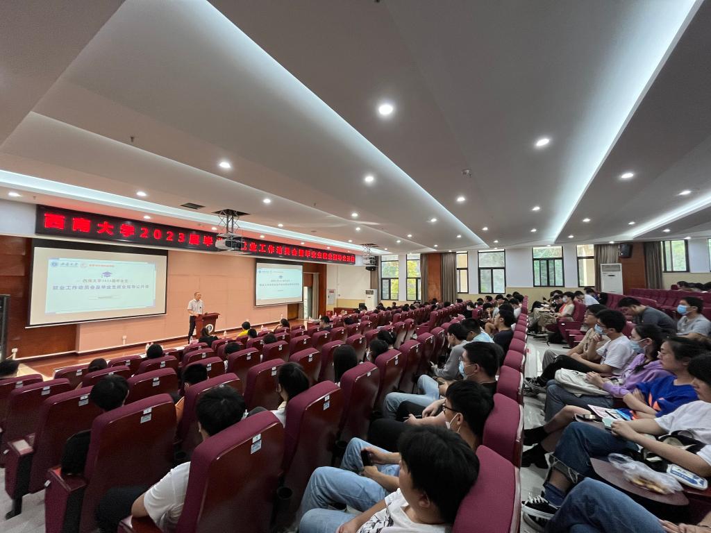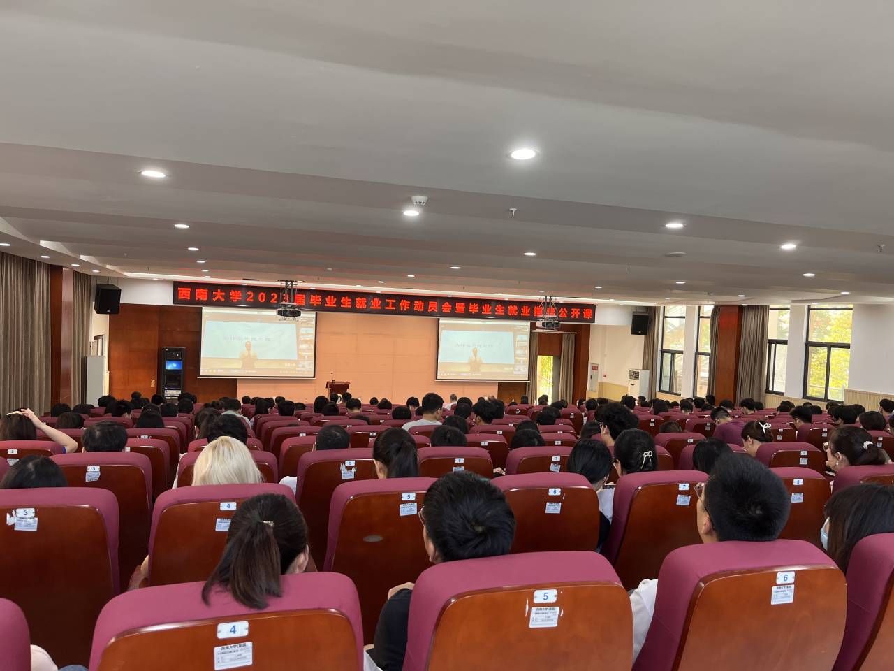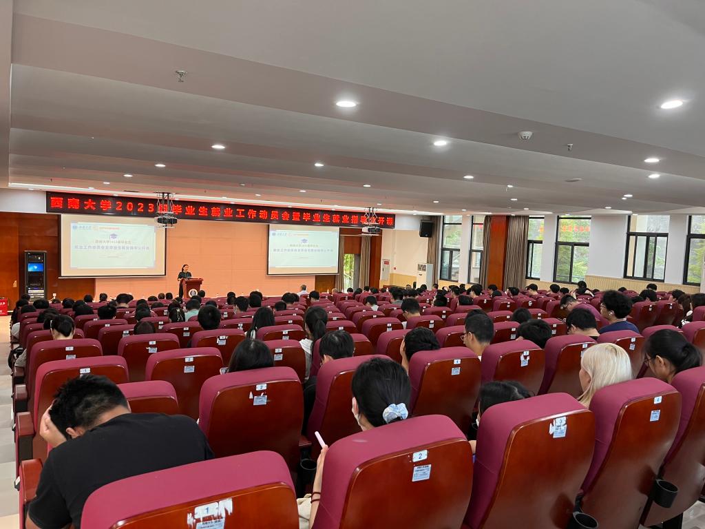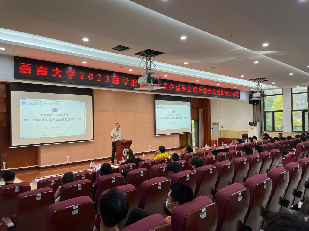 在隆平楼204报告厅举行2023届毕业生就业工作动员会暨毕业生就业指导公开课。学院党委书记阳义健、党委副书记郑莉佳、2023届本科毕业生辅导员许莹竹、研究生辅导员李唐思禹、毕业年级各班班主任、2023届全体毕业生参加了本次大会,会议由许莹竹主持。会议采取“视频直播+现场集中+线上分散”的模式,分线上直播收看学校主会场就业指导公开课和学院毕业生就业动员两阶段,为同学们蓄志集力。
