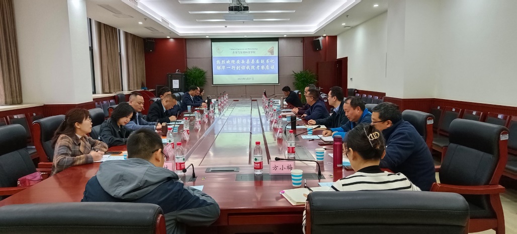 交流座谈,洽谈合作。学院党委书记阳义健、院长吕典秋出席座谈会。