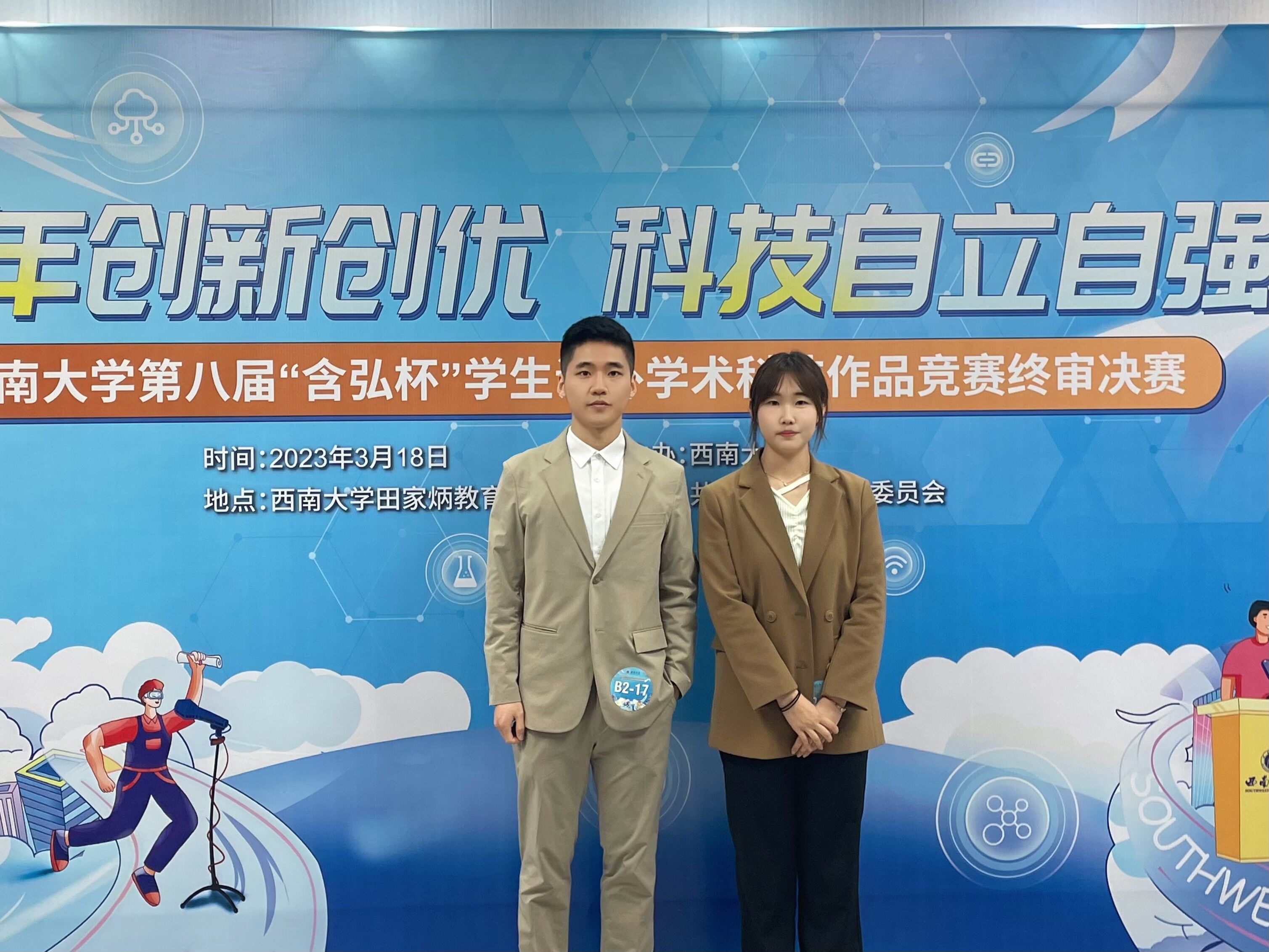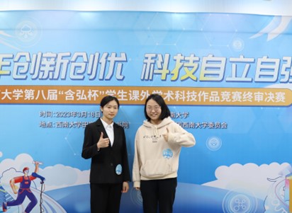 有9项作品进入决赛,其中5篇自然科学类学术论文、3篇哲学社会科学类社会调查报告和学术论文和1项科技发明制作,由陈楚怡、赵梓钧、王硕等九位同学分别代表自己团队参与“含弘杯”学生课外学术科技作品竞赛决赛答辩,最终斩获一等奖2项、二等奖3项、三等奖4项,学院也以团体总分第二名的好成绩荣获大赛“优胜杯”。