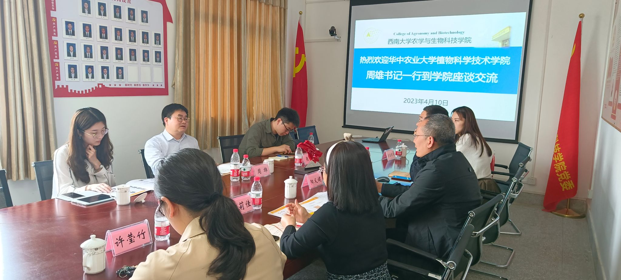 4月11日,华中农业大学植物科学技术学院党委书记周雄一行来院调研交流。学院党委书记阳义健、党委副书记郑莉佳、副院长张建奎、学生工作办公室主任许莹竹、研究生辅导员李唐思禹参加座谈。