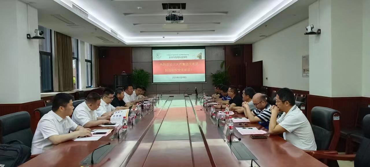 吕典秋院长首先对翟永胜书记一行的到来表示热烈欢迎,并详细介绍了学院近年来在人才队伍建设、学科发展、产学研合作创新以及科技成果转化等各领域取得的成果。吕典秋表示,北大荒集团是为服务我国战略而生,是我国现代农业发展及产业化发展的核心代表。作为国内规模最大的农产品综合加工企业,北大荒集团勇担历史责任,解答时代命题,彰显了“中国粮食 中国饭碗”的使命担当。希望双方能以此次交流为契机,围绕符合国家重大战略需求的农业重点领域开展深入务实合作。