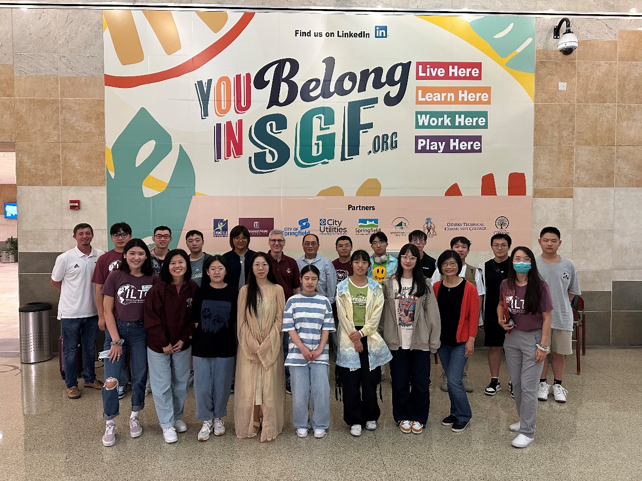 美国当地时间2023年8月9日晚,13名2020级植物科学与技术专业学生在学院中外合作办学办公室主任刘志斋的带领下,顺利抵达布兰森国际机场。密苏里州立大学(MSU)副校长Brad与山林校区校长Chin-Feng Hwang(黄晋丰)教授,率中国项目办公室和国际领导力培训中心(ILTC)的老师,一起到机场迎接。