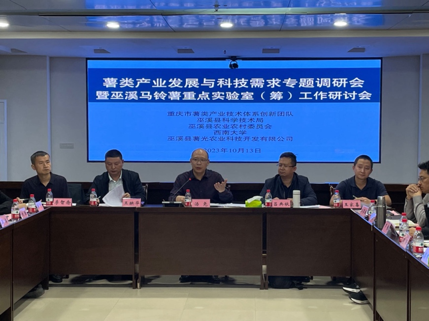 为深入学习领会习近平总书记关于农业科技创新和人才工作的重要论述,认真贯彻落实市委、市政府关于农业科技创新和人才工作部署,应市农业农村委关于《全市农业科技创新和人才工作专题调研方案》要求,2023年10月13日,薯类产业发展与科技需求专题调研会暨巫溪马铃薯重点实验室(筹)(以下简称“实验室”)工作研讨会于巫溪顺利召开。巫溪县科学技术局局长汤尧,重庆市薯类产业技术体系首席专家、御姐av