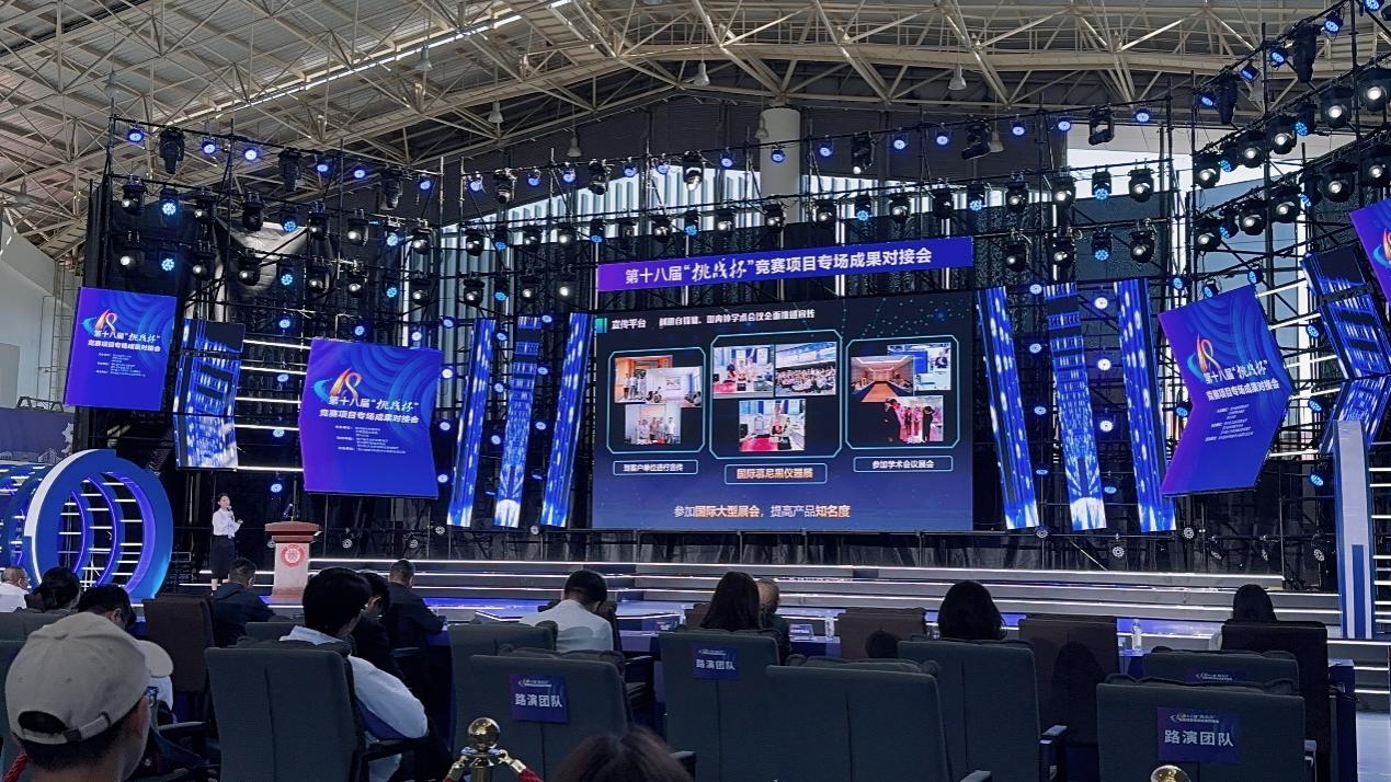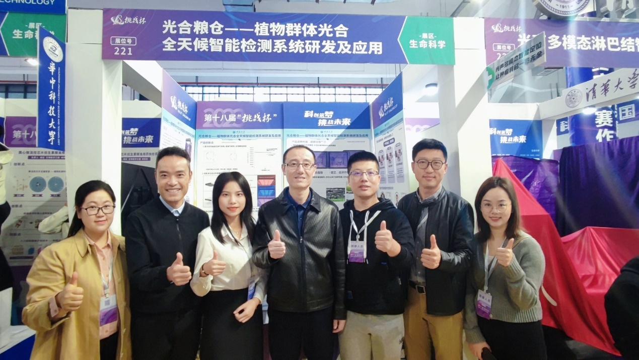 10月30日,第十八届“挑战杯”竞赛项目专项成果对接会在贵州大学举行。光合粮仓”项目作为优秀项目之一,与来自上海交通大学、四川大学等高校的10支优秀团队作了项目成果推介路演,推动项目落地转化。项目核心成员孙羽同学在竞赛项目成果对接大会上,为在场的各位领导和同学们汇报了项目成果转化及未来发展方向;项目核心成员郑凯琴在竞赛科技成果展上,为众多高校观展、听展的老师和同学们介绍项目并解答。“我们团队经过技术攻关,自主创新群体光合模型,研发了可高效、准确、多指标测定植物群体光合的全天候智能检测系统。”项目负责人李玲依表示,该产品可以广泛用于水稻和玉米等作物的高光效品种创制等领域,进一步提高作物产量,希望以后能在贵州实现应用。