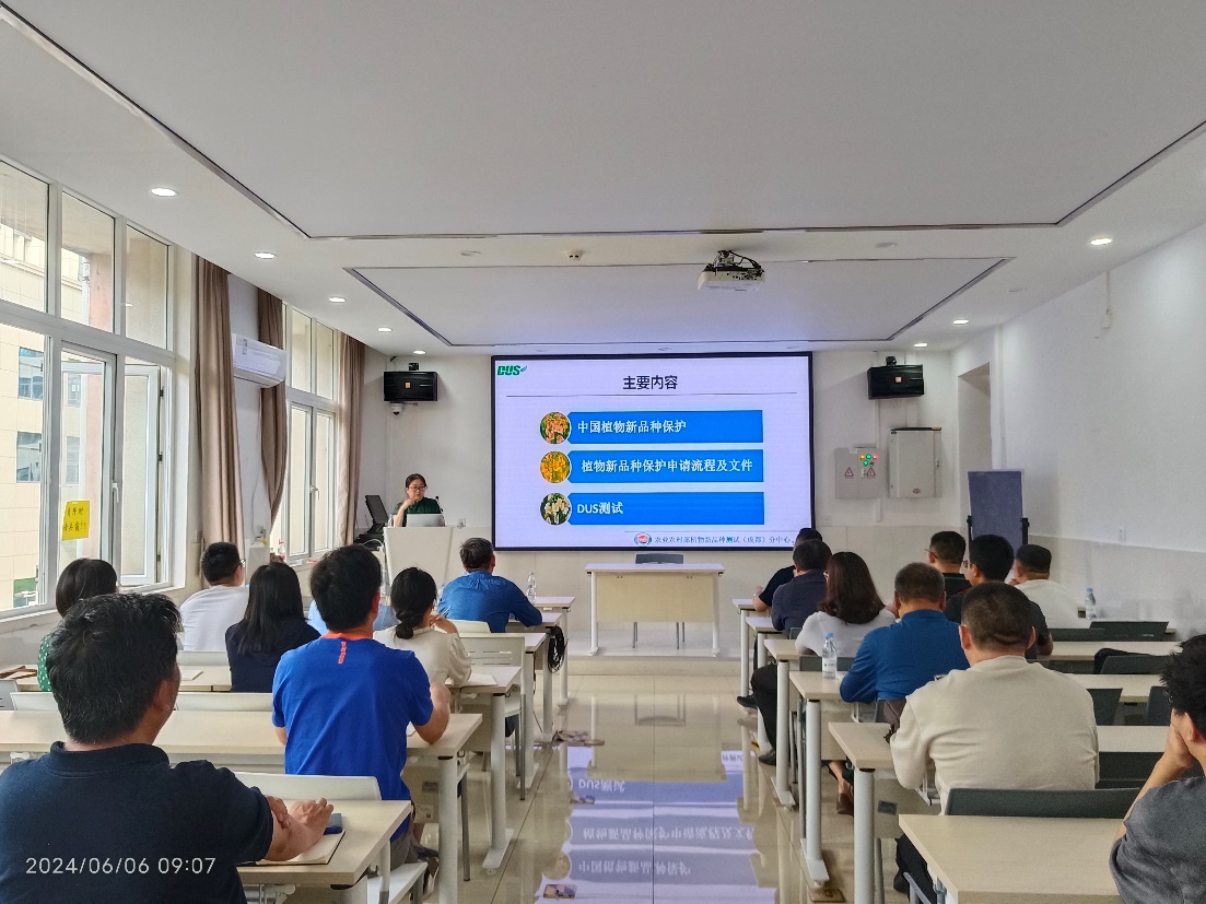 交流会伊始,余毅研究员先是回溯了植物新品种保护工作的历史渊源,重点梳理了新品种保护的一系列概念,并介绍了国内新品种保护的现状和最新进展。在此基础上,她依托于丰富的一线工作经验,利用图文并茂的课件,就农业科研工作者密切关心的植物新品种保护申请流程及相关文件填报事项、自主及委托开展DUS测试的相关细节进行了生动的讲解,让与会听众获益匪浅。