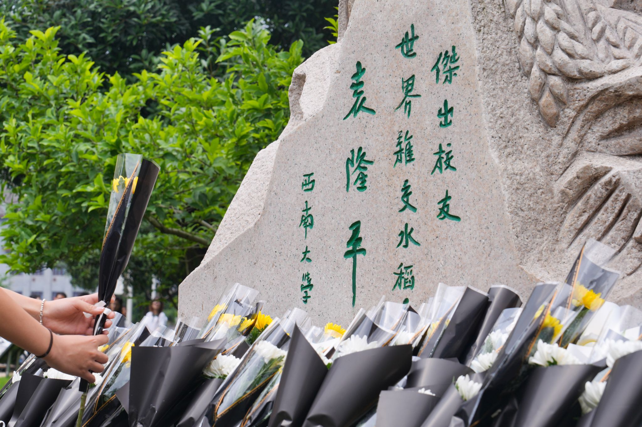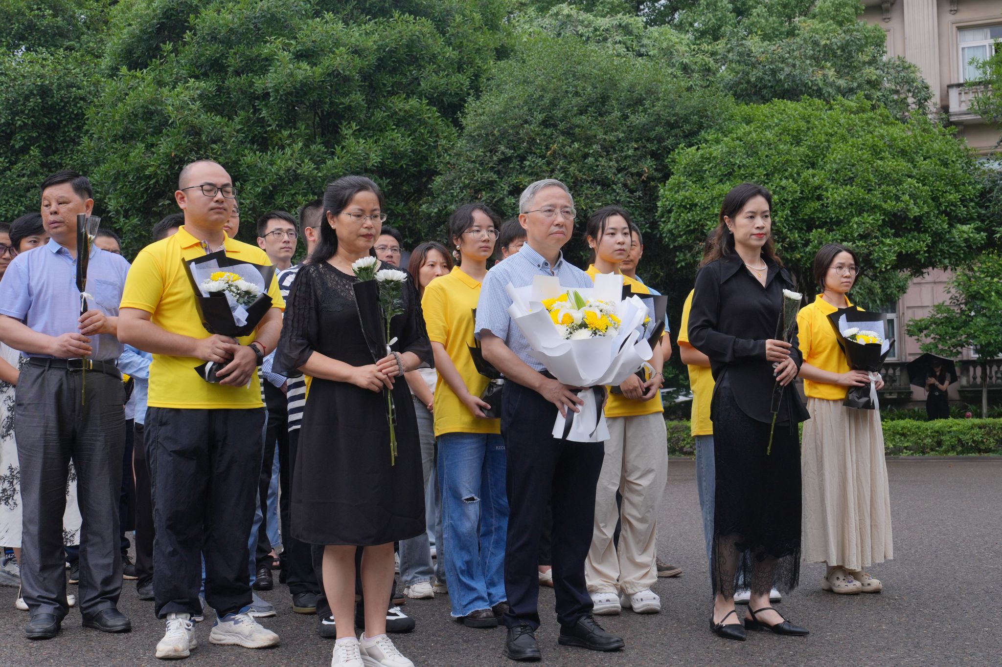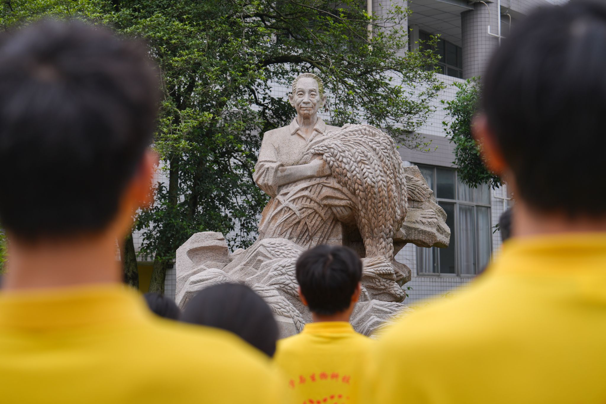 32教学楼前的袁隆平雕像处敬献鲜花、深切缅怀。御姐av