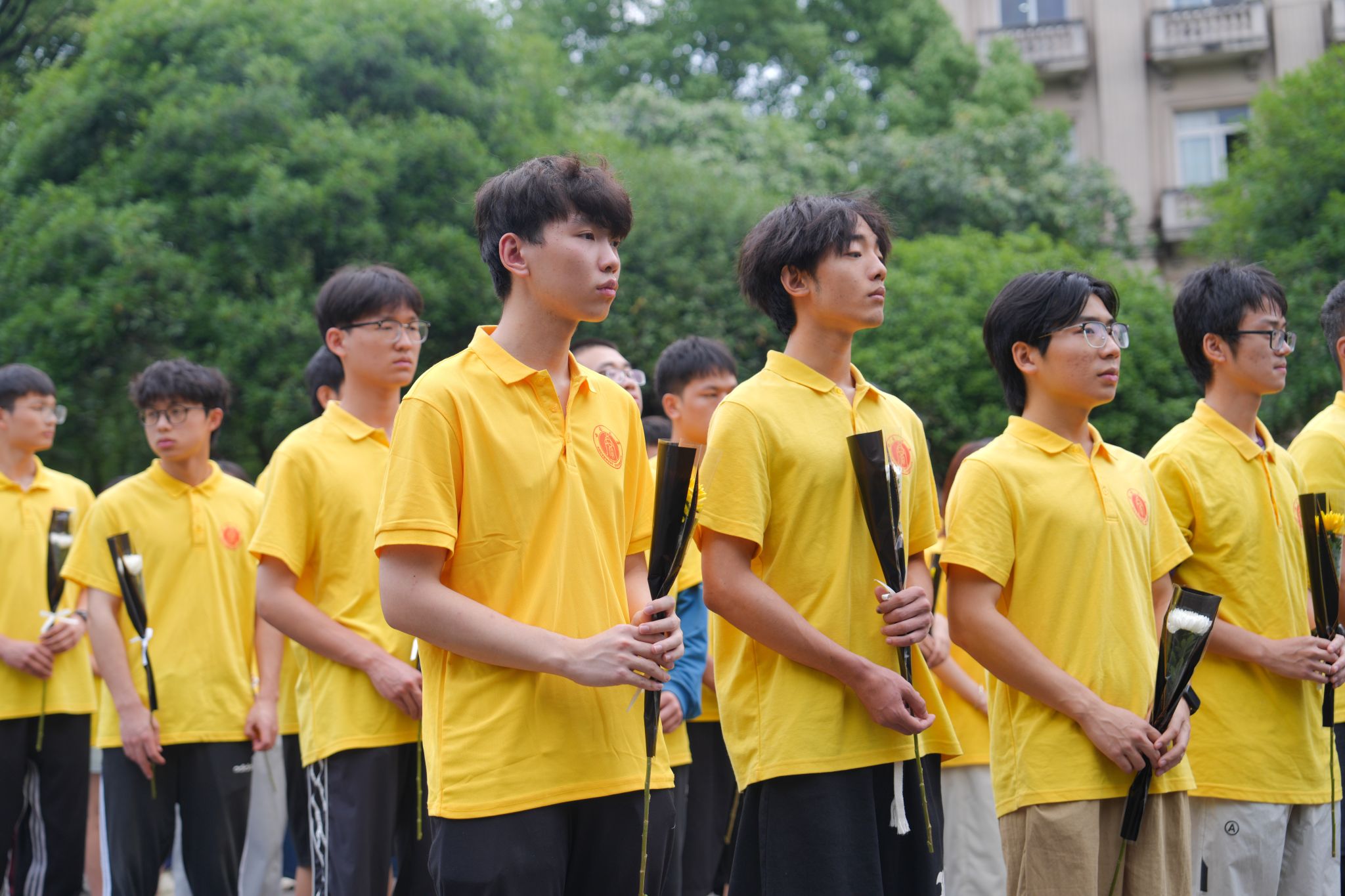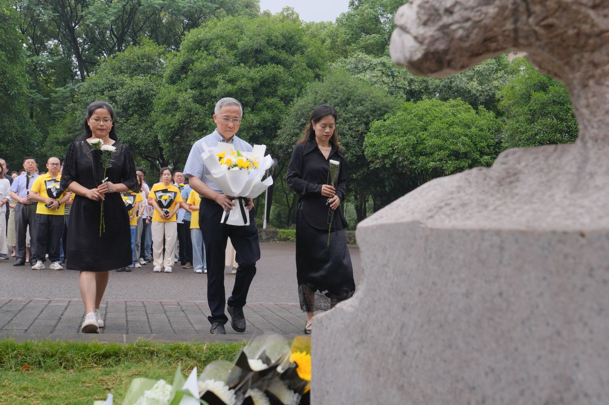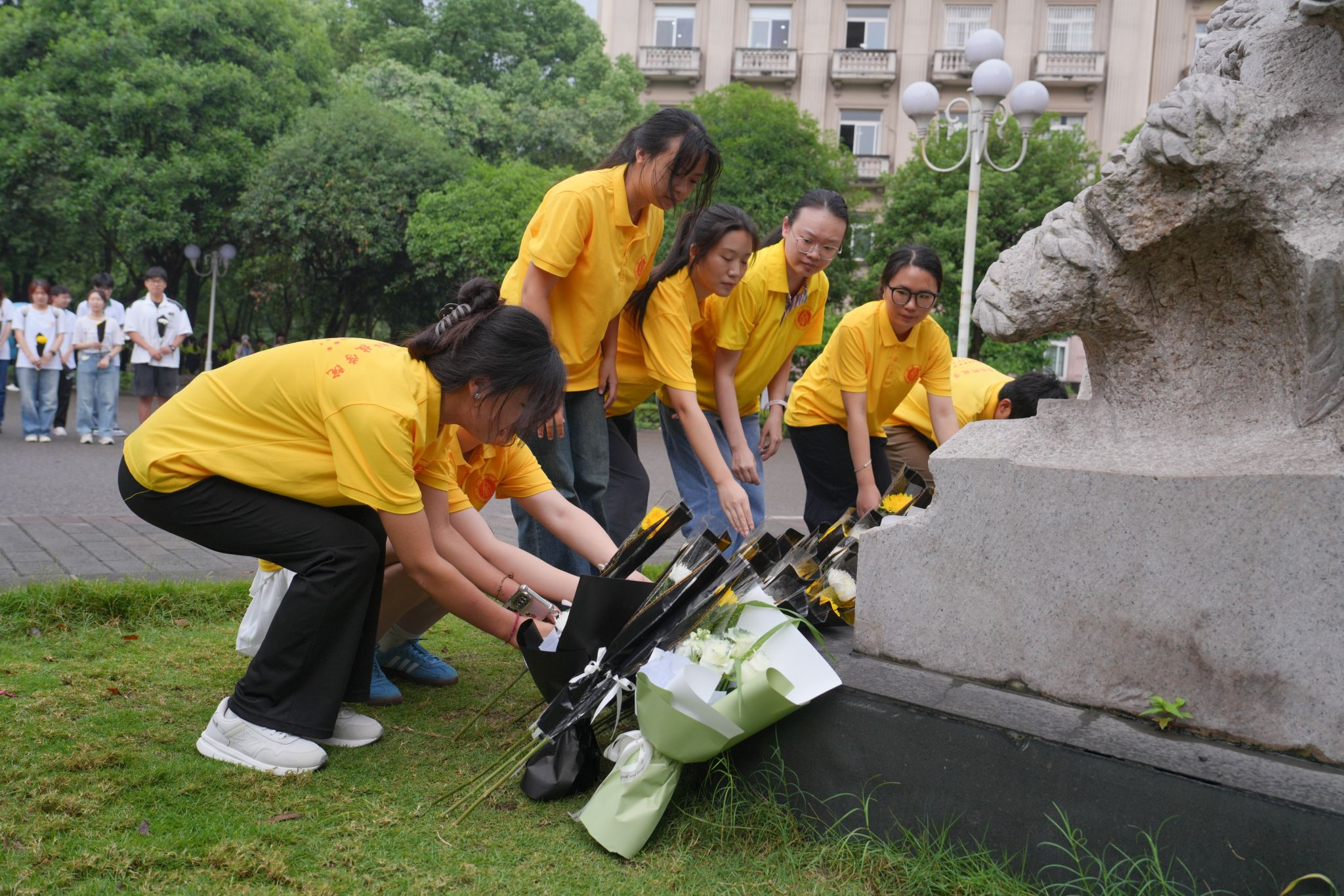 32教学楼前的袁隆平雕像处敬献鲜花、深切缅怀。御姐av