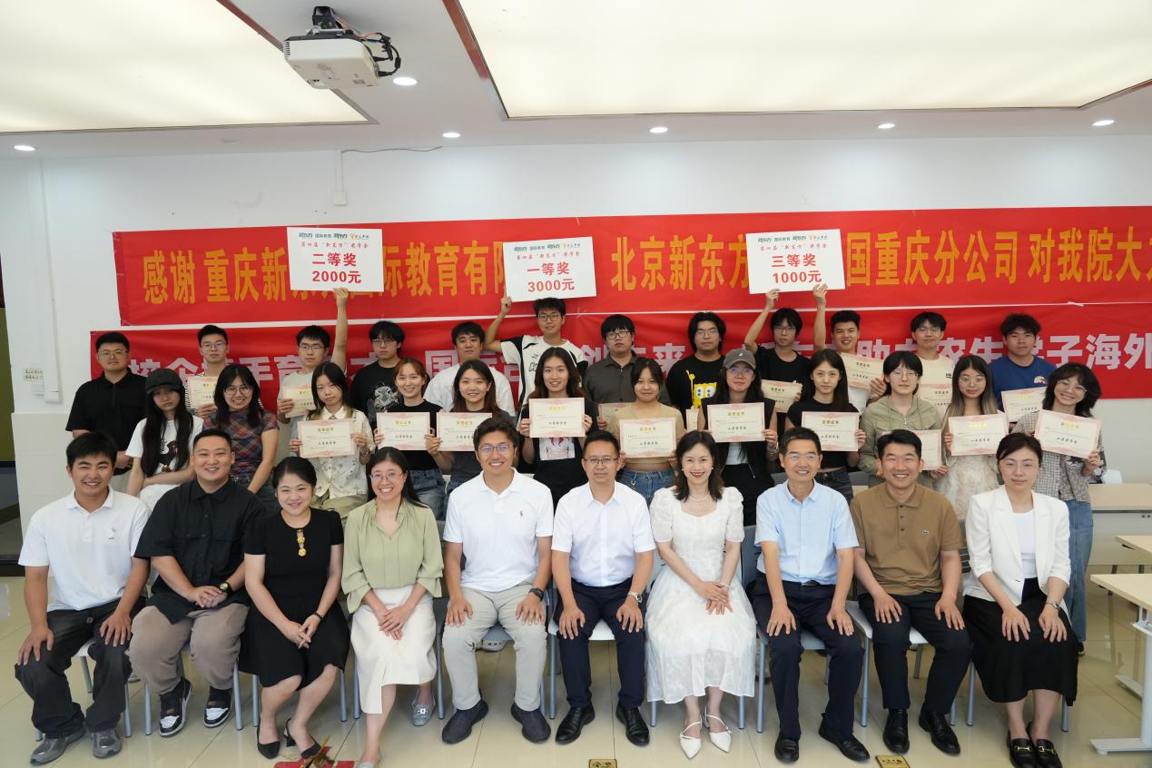 学生41位,总计金额9万元。2025-2027年“新东方奖学金”将由重庆新东方国际教育有限公司每年捐赠3万元,由北京新东方前途出国重庆分公司每年捐赠1万元共同组成,该捐赠将连续3年,共计12万元注入学院“新东方奖学金”基金池。