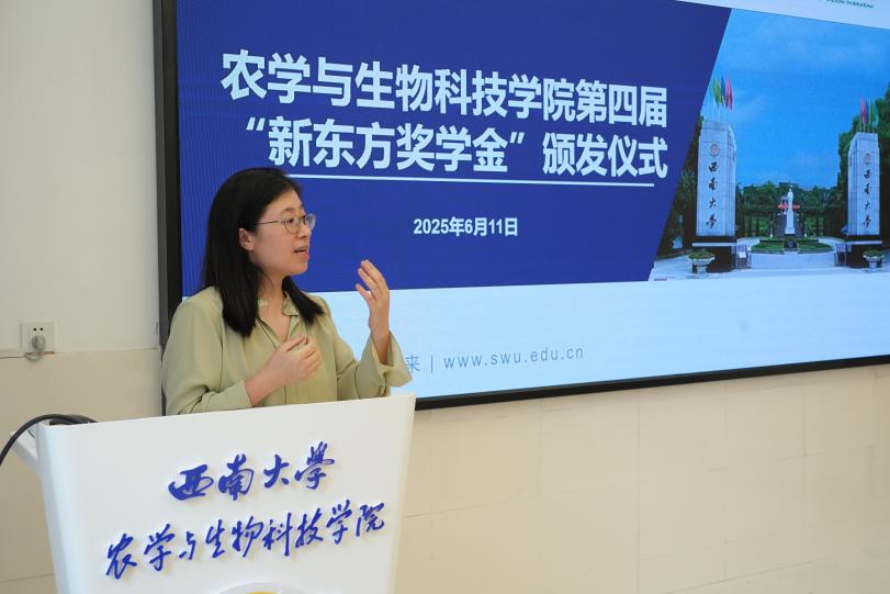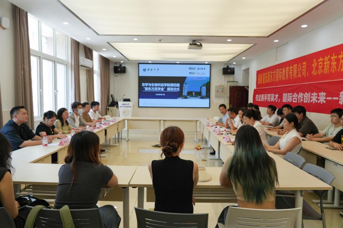 ,感谢新东方的慷慨捐赠与支持。他强调,学院一直致力于培养兼具家国情怀与国际视野的农科人才,“新东方奖学金”也重点用于奖励选择转校区的优秀学生,鼓励他们走出国门学习前沿知识,为社会发展贡献力量。自2019年与美国密苏里州立大学开展中外合作办学项目以来,学院累计派送41位学生赴美学习,38位学生正在世界名校继续深造,其中2位已经获得全额博士奖学金,转校区学生在海外学习成果亮眼。今年,学院将继续派送23名学生前往美国学习。