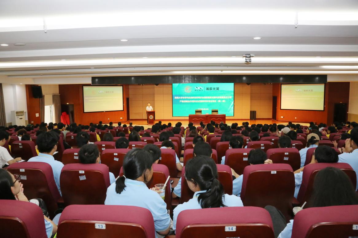 随后,张晗董事长为同学们带来了一堂生动的新农科专业导论课。他简单分享了自己在中国科学技术大学攻读计算机科学和理论物理本科专业,在美国亚利桑那大学攻读光学专业博士学位,在美国道格拉斯科学公司从事智能设备研发工作等跨学科领域的求学与工作经历,并介绍了他如何紧跟国家战略需求,带领团队艰苦奋斗,把瀚辰光翼打造成为国家级专精特新“小巨人”企业的创业经历。