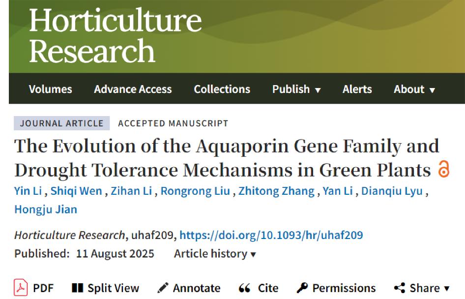 薯类团队在Horticulture Research上在线发表了题为“The Evolution of the Aquaporin Gene Family and Drought Tolerance Mechanisms in Green Plants”的研究论文,首次在多维尺度上揭示了水通道蛋白(AQP)基因家族的进化规律和耐旱机制,为作物抗旱育种提供了重要的分子靶点。