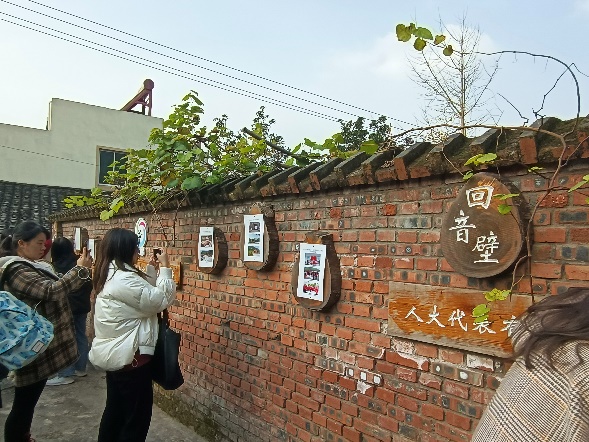 随后,杜书记带领师生们入村参观,切身体会东升浓厚的艺术氛围。走在乡野村道上,道路两旁香柳相映,房屋瓦舍色彩明亮又不失整齐有序,多样的图画、柔美的线条配合靓丽的自然色形成一幅风景画,帧帧入目。建设者们以群众为主体,充分考虑村民的意愿和利益,提高村民参与度。墙面上有许多图画是艺术家将村中儿童的原创画作等比例放大摹刻而成的,既富有创造性又充满原生态,增强村民的归属感和凝聚力。杜书记提到目前东升的工作重点在于引导村民有序自治,村委坚持与人民群众紧密联系的原则,村中设置“传声筒+回音壁”,鼓励村民积极提出意见建议,条条有回应,村务公开透明,践行“全心全意为人民服务”的宗旨,保障村民权利的实现。