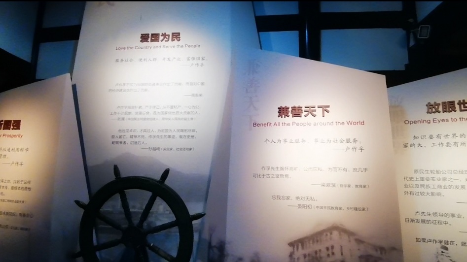 我们一行人怀着崇敬之心,跟随讲解员跨进卢作孚纪念馆的门槛,所有人不约而同地安静下来,在讲解员地引导和讲述中,我们了解了卢作孚先生的生平事迹,在一字一句和一张张泛黄的照片中,我们仿佛身临其境,感受那个时代的水深火热和卢作孚先生的伟大,真切地体会到那个年代的一声一响、一举一动,深切的领略到先生爱国爱民、兼善天下的胸怀和格局!