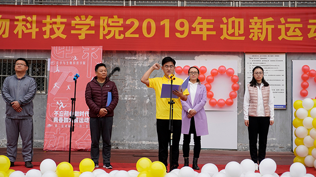11月2日上午九点举行运动会开幕式,学院党委书记赵子华,副书记方凤玲、党委专职组织员薛中华、团委书记许莹竹、辅导员白祯和全院学生共同出席开幕式,开幕式由院团委书记许莹竹主持。学院党委书记赵子华为本次运动会致开幕词,他指出身体是革命的本钱,我们农生人不仅在理论课程上要扎实用功,充沛的体力和良好的身体素质更是每一位学子全面发展的重要保障。风雨兼程的70年里,新中国的体育事业取得了举世瞩目的成就,永不言弃的女排精神、坚毅顽强的军人精神值得所有新时代青年学习。书记还强调团队精神的重要性,无论是体育运动还是教学科研,都要学习和发扬的这样宝贵的精神品质。
