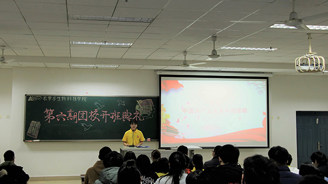在三十五教518教师隆重举行以“青年齐奋斗,建功新时代”为主题的第六届团校培训班开班典礼,校团委副书记于涛、学院党委副书记方凤玲、学院团委书记许莹竹、学院辅导员薛中华以及本期团校162名学员共同出席此次典礼。