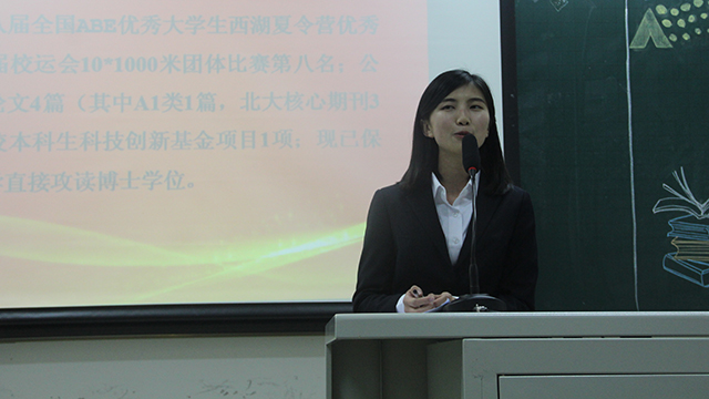来自我们本学院的刘飞燕同学,同样给了广大同学带来了很多惊喜。作为学院的骄傲,她的成功无疑成为了我们的指向标。除去对于学业成果的展示,她的演讲中大多是对我们的开导与鼓励,“其实我们学的不是种田,而是农业科学”、“大家都要加油,成为像袁院士一样杰出的人才”,字里行间满满的正能量,把活动推向高潮。