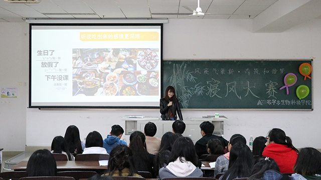 于3月25日下午两点在35教418教师进行了首届寝室风采大赛决赛。学院团委学生会主席团以及各部长担任本次比赛评委。经过为期5天的初赛角逐,评审团分别从卫生、纪律、学习三方面对各寝室进行打分并排名,最终有10个寝室入围决赛。