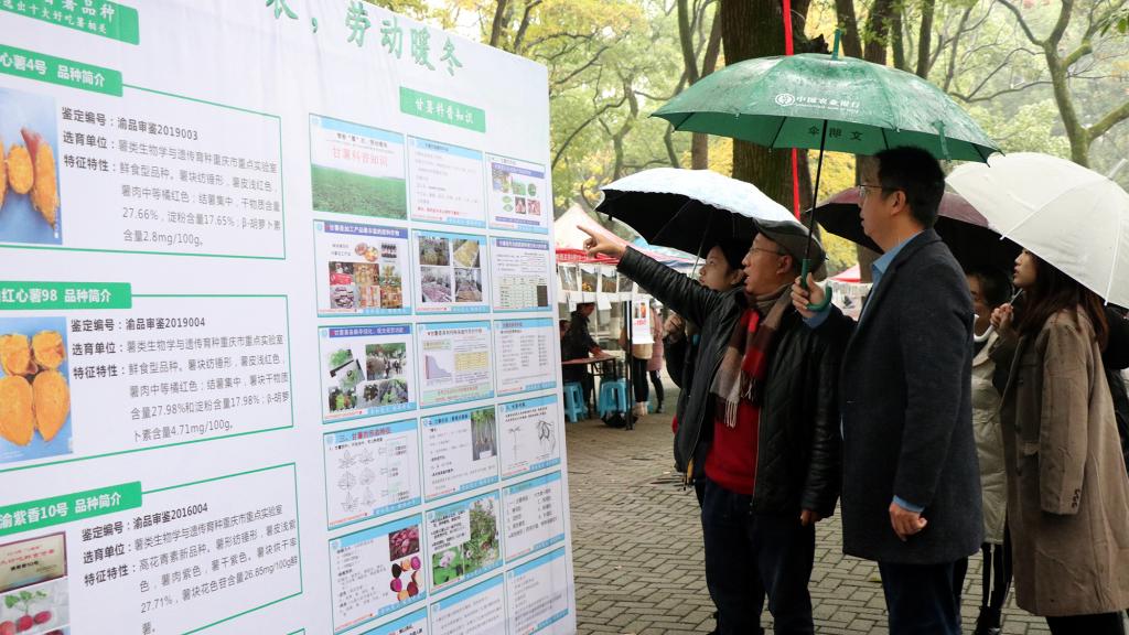 11月21日,学院师生在校内南区樟树林进行甘薯科普知识宣传及专业学生生产实践劳动场景照片展,参与答题的同学可以免费领取烤好的红薯。即便下着大雨,香喷喷的红薯依旧吸引了不少同学前来围观。11月22日,教务处、学院与后勤集团膳食中心衔接,在全校学校7个学生食堂和2个教工食堂开设专门的免费品尝窗口,分别于早餐、午餐和晚餐时段,将同学们收获的三个品种约2000斤甘薯蒸熟免费供全校师生品尝。早上7点多,御姐av