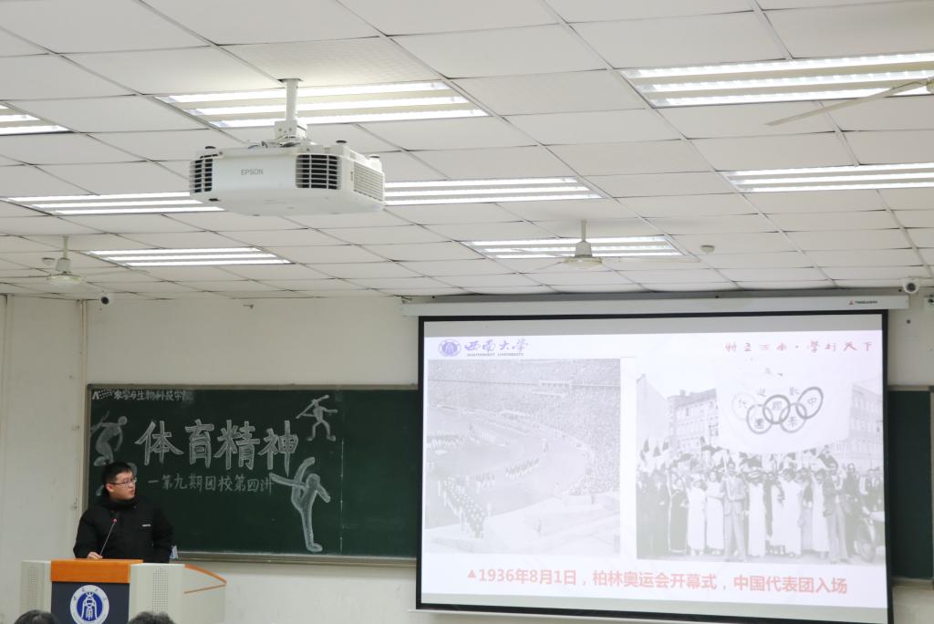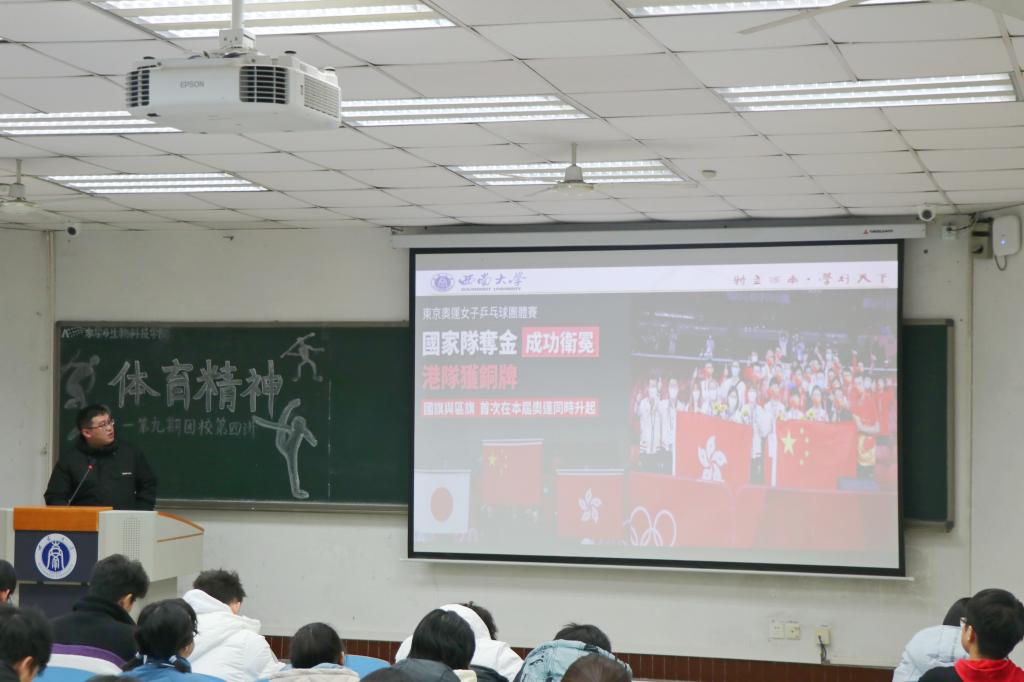 奥运健儿的奋斗故事,迎接2022年北京冬奥会,2021年12月26日19:00,学院第九期团校培训班32教313教室开展第四次专题讲座,邀请到西南体育学院党委专职组织员李进老师为全体团校成员讲授奥运精神和拼搏人生。