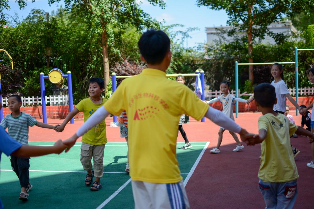 仪式结束后,实践队带领小朋友们开展支教体育小课堂,带动小朋友们健康运动。支教期间,为开拓视野、增强技能,实践队设计了不同类别的课程。隆平精神学习小课堂中,实践队谷子怡同学以视频形式讲述水稻从播种到收获的过程,让孩子们切实感受到每一粒米饭的珍贵,齐声读出“谁知盘中餐,粒粒皆辛苦”,体现珍惜粮食的重要性。向孩子们讲述杂交水稻之父袁隆平的事迹,让孩子们认识、学习隆平精神,加强对孩子们的德育教育,帮助孩子们树立正确价值观、人生观、世界观,将来为祖国强盛做共享。