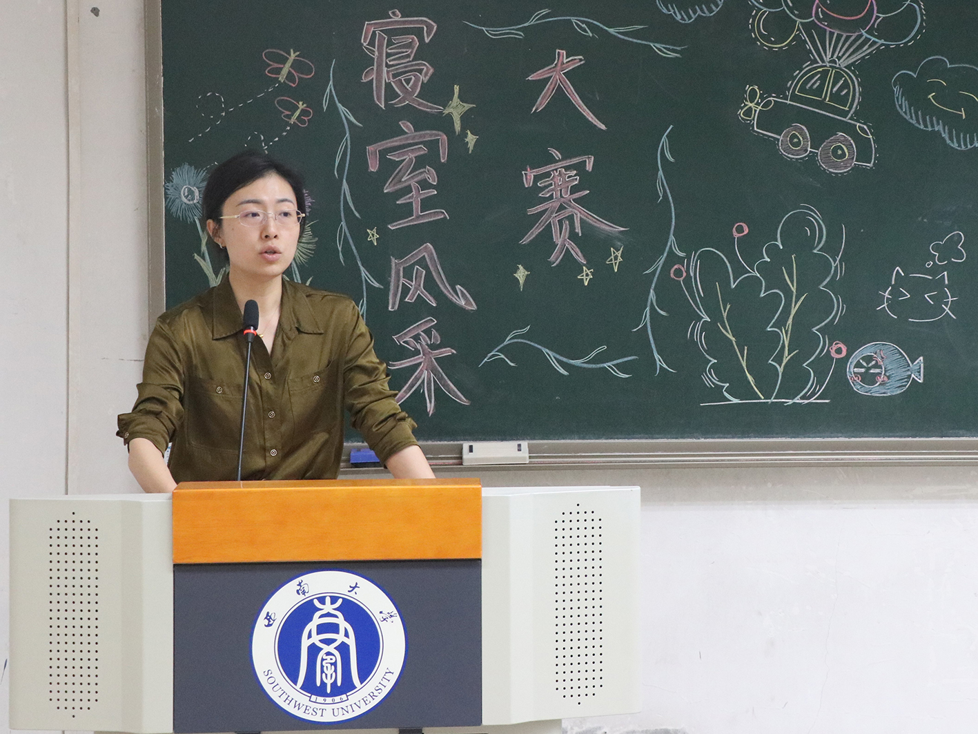 最后,白祯老师作总结讲话。“每个寝室的汇报展示都很全面,都各具特色、不落俗套”,白老师对参赛寝室的汇报给予高度评价。同时,她也建议同学们思考创新方式,灵活多样地将思想引领、学风建设、未来展望有机融入寝室建设中。她还表示,要根据寝室成员的不同需求特点,找准寝室定位,根据寝室定位更好进行寝室建设、展望规划未来。