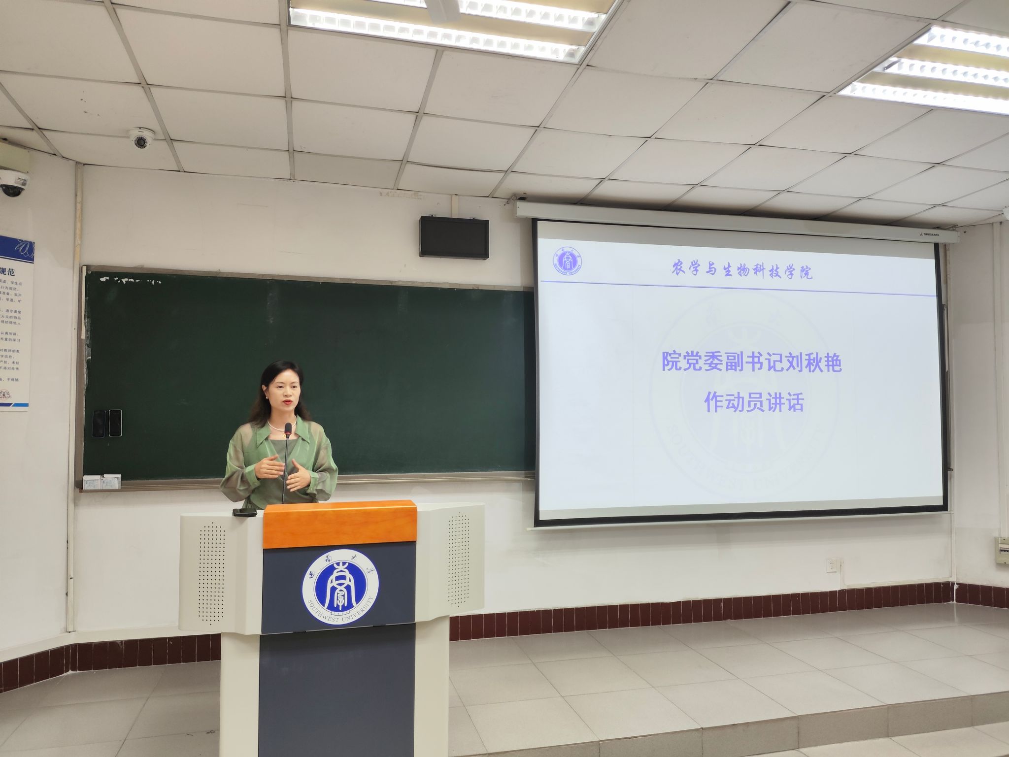 她代表学院党委郑重承诺,将举全院之力,整合校内外优质资源,为每一位毕业生的高质量就业和升学深造提供坚实保障,同时希望同学们志存高远,胸怀家国,将个人发展融入强国建设与民族复兴伟业,在保障国家粮食安全、推动农业科技自立自强中担当作为。